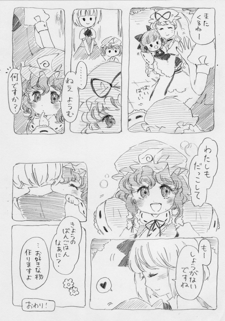 そんな中でツイッター上ではエア例大祭なるものが開催され、私も一般で参加して新作ゲットしたりしてました…ぱっつん霊夢は私の巫女ちゃん!その最中にアップした幼女ゆゆれいむ漫画です。