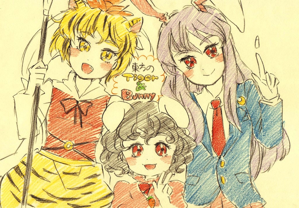 あとこれはネタっぽいのですが東方にもタイガー&バニーいるじゃないですかやったー!とツイッターでお話してたところからできました。どっちも5面ボスですね。性格に結構難ありな兎達と真面目ドジっ子の虎の組み合わせ、結構良いと思います。