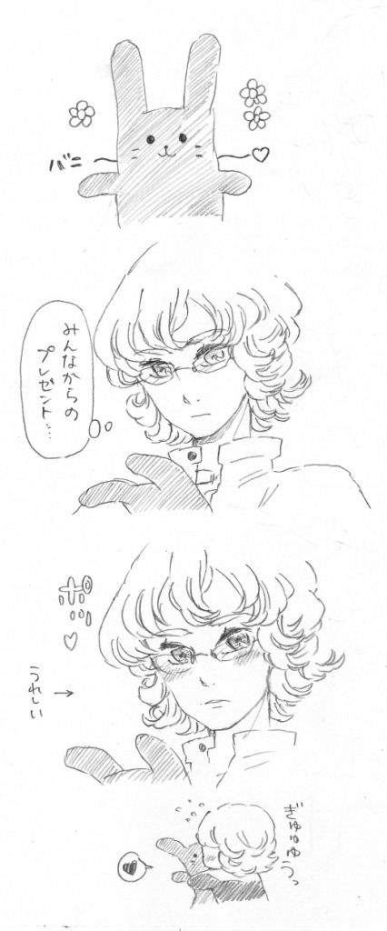 今期は割と欲張ってて、TIGER&BUNNY、シュタインズゲート、変ゼミ、カイジ、よんでますよアザゼルさんを見ています。どれも面白くってお勧めですが一番はやっぱタイバニですね!ヒーローズがかわいすぎて生きるのが楽しいです。そんな中からバニーちゃんらくがきぱらっ